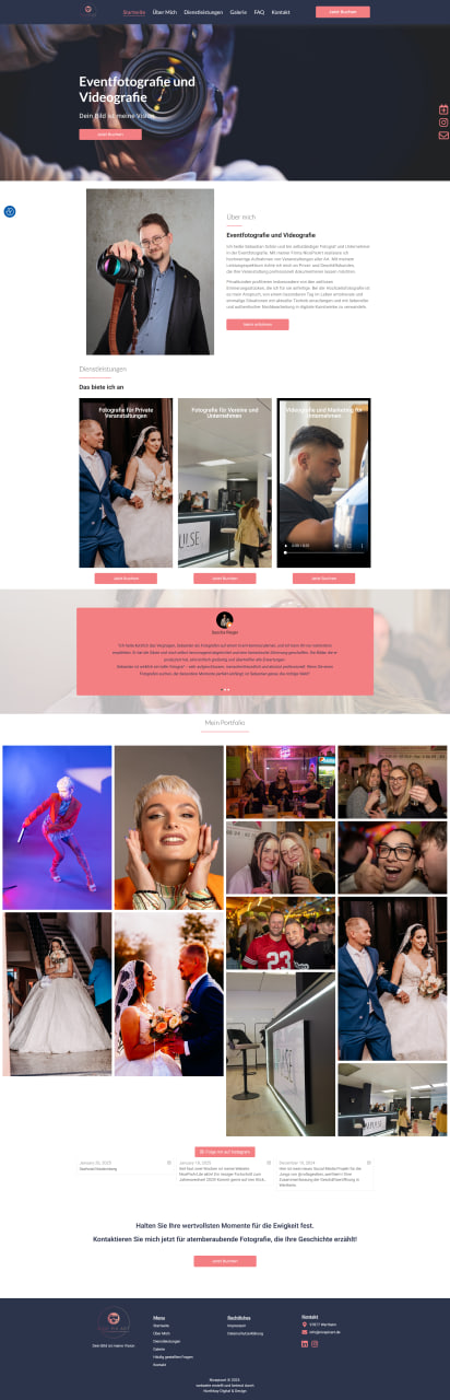Für unseren geschätzten Kunden Sebastian Schön, einen talentierten Eventfotografen, haben wir ein individuell gestaltetes Webdesign-Projekt realisiert. Unser Ziel war es, seine beeindruckenden Eventfotografien und Dienstleistungen optimal zur Geltung zu bringen. Die von uns entwickelte Webseite überzeugt durch ihre Benutzerfreundlichkeit und ihr ansprechendes Design, und erfüllt alle erforderlichen funktionalen Ansprüche.